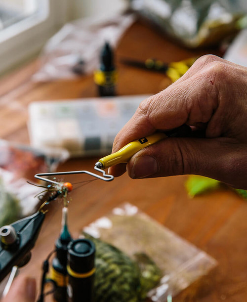 El clásico whip finisher con cuerpo ergonómico con recubrimiento en polvo. La base de la herramienta está afilada para que el remate de moscas y el corte de hilo se puedan realizar con una sola herramienta.